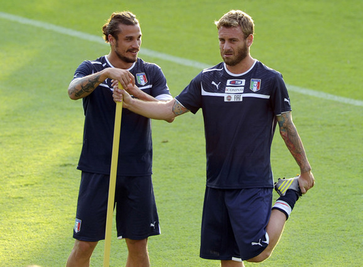 Amigos. Osvaldo y De Rossi jugando para la Selección italiana. Los dos aman a Boca.