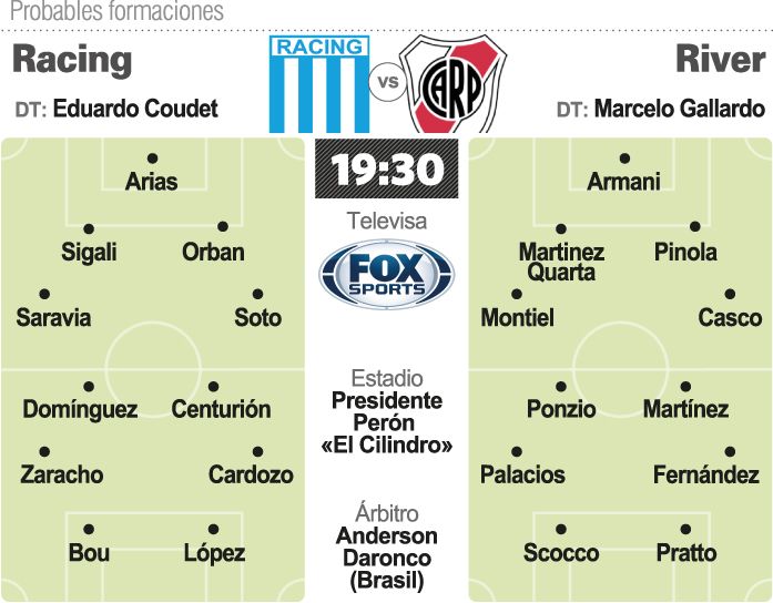 Sin misterios, con la seguridad de haber realizado una muy buena pretemporada y haberle dado rodaje al equipo en amistosos y partidos por Copa Argentina, el once de River para enfrentar a Racing este jueves en Avellaneda ya está definido. Un clásico lleno de historia que promete emociones por lo que proponen ambos. Racing y sus ambiciones y River con todo su potencial y un momento excepcional.