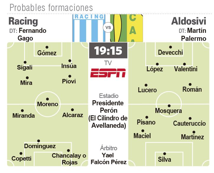 En la zona del mediocampo, entrarán Matías Pisano por Matías Morello y Leandro Maciel por Marcelo Meli para intentar manejar la pelota. El resto del equipo será el mismo que cayó ante Arsenal.