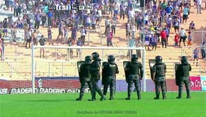 En tanto, otra versión señaló que los incidentes comenzaron cuando la Policía intentó sacarle una bandera a los hinchas en la que expresaban su malestar con Heinze y pedían su renuncia.