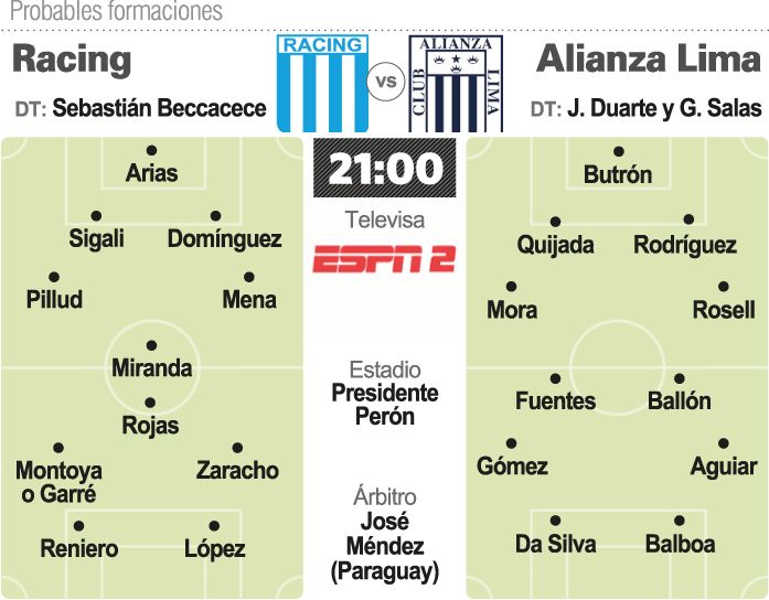 Racing recibirá hoy a Alianza Lima, de Perú (21 horas, por ESPN 2), con el objetivo de conseguir un triunfo que le allane el camino a la clasificación a la próxima ronda, en un partido válido por la fecha 2 del Grupo F de la Copa Libertadores. La Academia se impuso por 2-1 ante Estudiantes de Mérida en su debut copero, en un partido que se disputó el jueves pasado en tierra venezolana.
