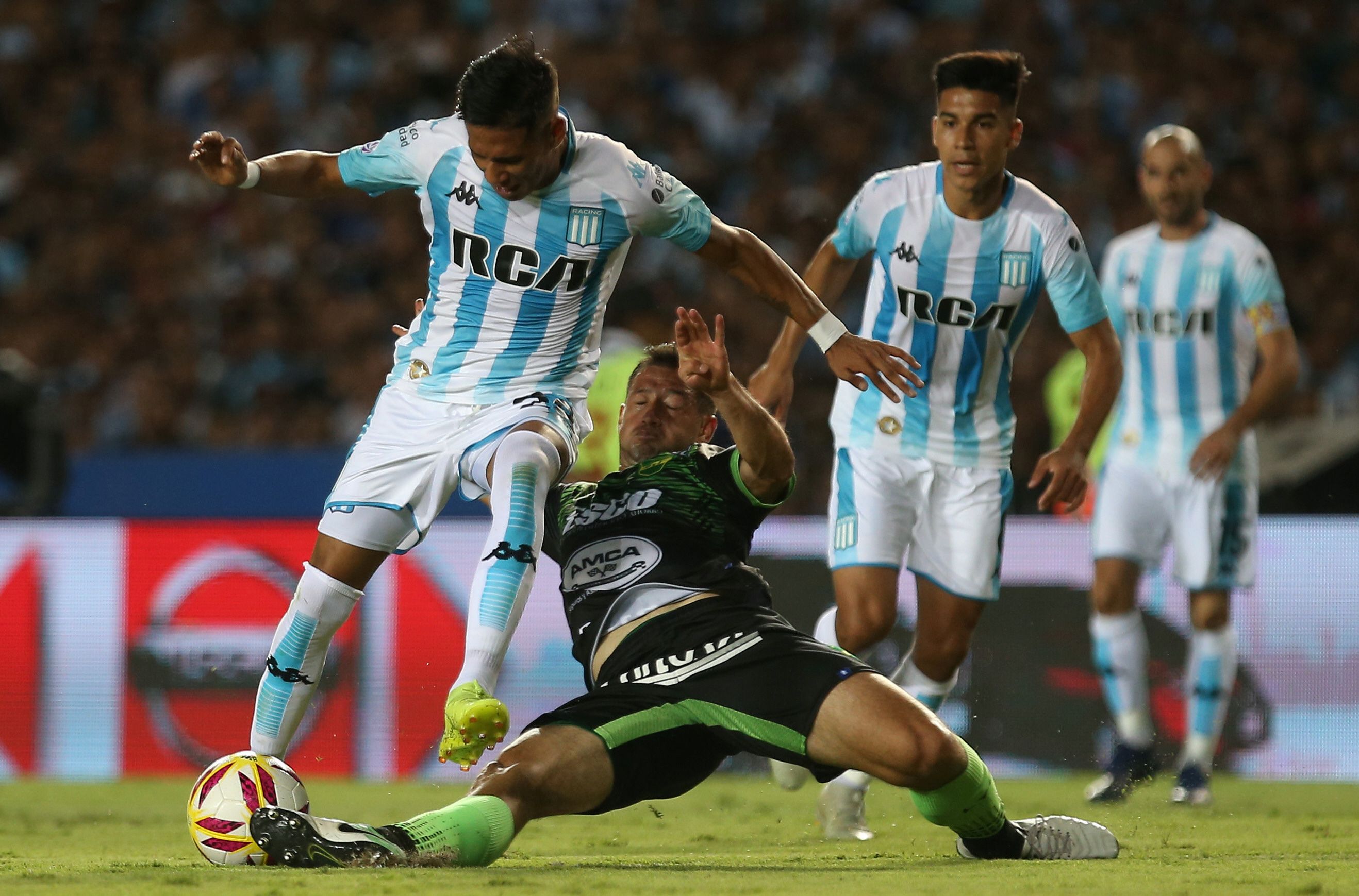El hecho de haber jugado sin presiones le permitió a Racing manejar los tiempos del partido. En el primer período, más allá de cierta paridad, la "Academia" se mostró bien parado, sin ser inquietado por un adversario que le dedicó el tradicional "pasillo" al campeón, antes del comienzo del partido.