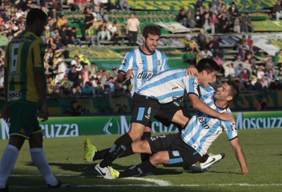 Racing se impuso por 2-1 a Aldosivi, como visitante, y así logró apaciguar el desconsuelo por haber sido eliminado el último jueves de la Copa Libertadores ante Guaraní de Paraguay, en un encuentro correspondiente a la decimocuarta jornada del torneo de Primera. Los goles de la “Academia” fueron anotados por el mediocampista Marcos Acuña y el defensor Luciano Lollo, a los 2 y 20 minutos, en tanto que para el “Tiburón” descontó Gastón Díaz a los 48min., todos durante la primera etapa.