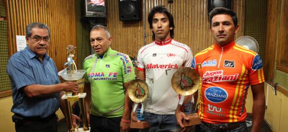 Ayer, durante la emisión del programa radial “Embalaje”, se entregaron las Copas Radio Sarmiento a los campeones de la temporada de ciclismo libre. Alberto Argüello ganador en Master C, José María “Buby” Roldán en libres y Fabián Graziani lo hizo en Master B, recibieron su premio de manos de Américo Vargas, conductor del envío radial que sale al aire los lunes, miércoles y viernes a las 20.