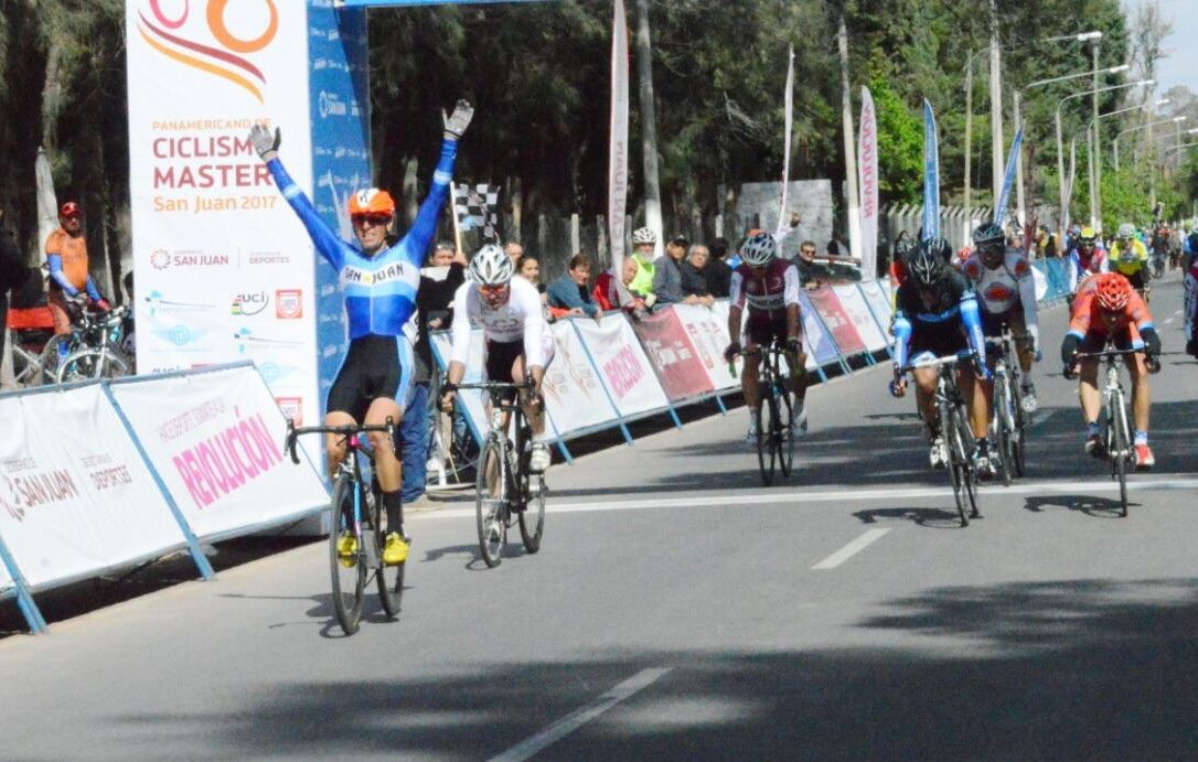 Dos triunfos sanjuaninos hubo ayer en la cuarta jornada de los panamericanos para master, en las pruebas criterium desarrolladas en El Pinar. El logrado por Darío Ramírez (B1) y el que compartió José Toledo con el brasileño Agusto Albinani (A2), tras un sprint muy apretado.