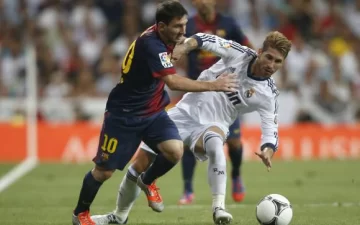 Barcelona, líder de la liga española de fútbol de primera división, que tiene a los argentinos Lionel Messi y Javier Mascherano, visitará hoy a Real Madrid, tercero y último campeón, en el que militan Gonzalo Higuaín y Angel Di María, en el superclásico de ese país, por la 26ta fecha.