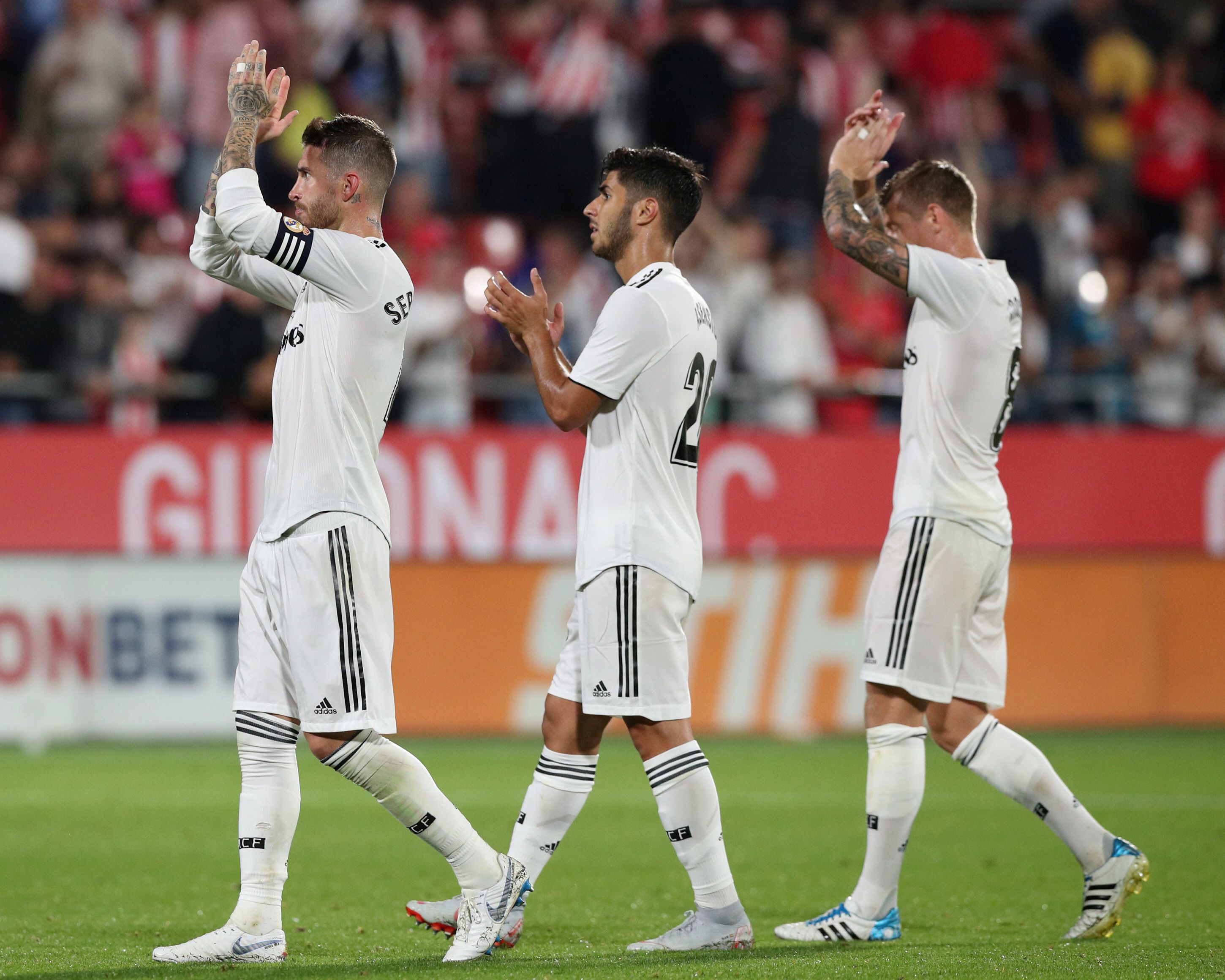 Real Madrid de Julen Lopetegui superó su primer examen liguero a domicilio en un estadio donde la pasada temporada salió derrotado. De nuevo le exigió el Girona, que explotó de inicio con Portu la zona de Marcelo y Borja García adelantó a su equipo a los 16 minutos. A seis del descanso empató Sergio Ramos de penal. La superioridad madridista en una segunda parte liderada por Isco, hizo aparecer la pegada de Karim Benzema -dos goles- y Gareth Bale.