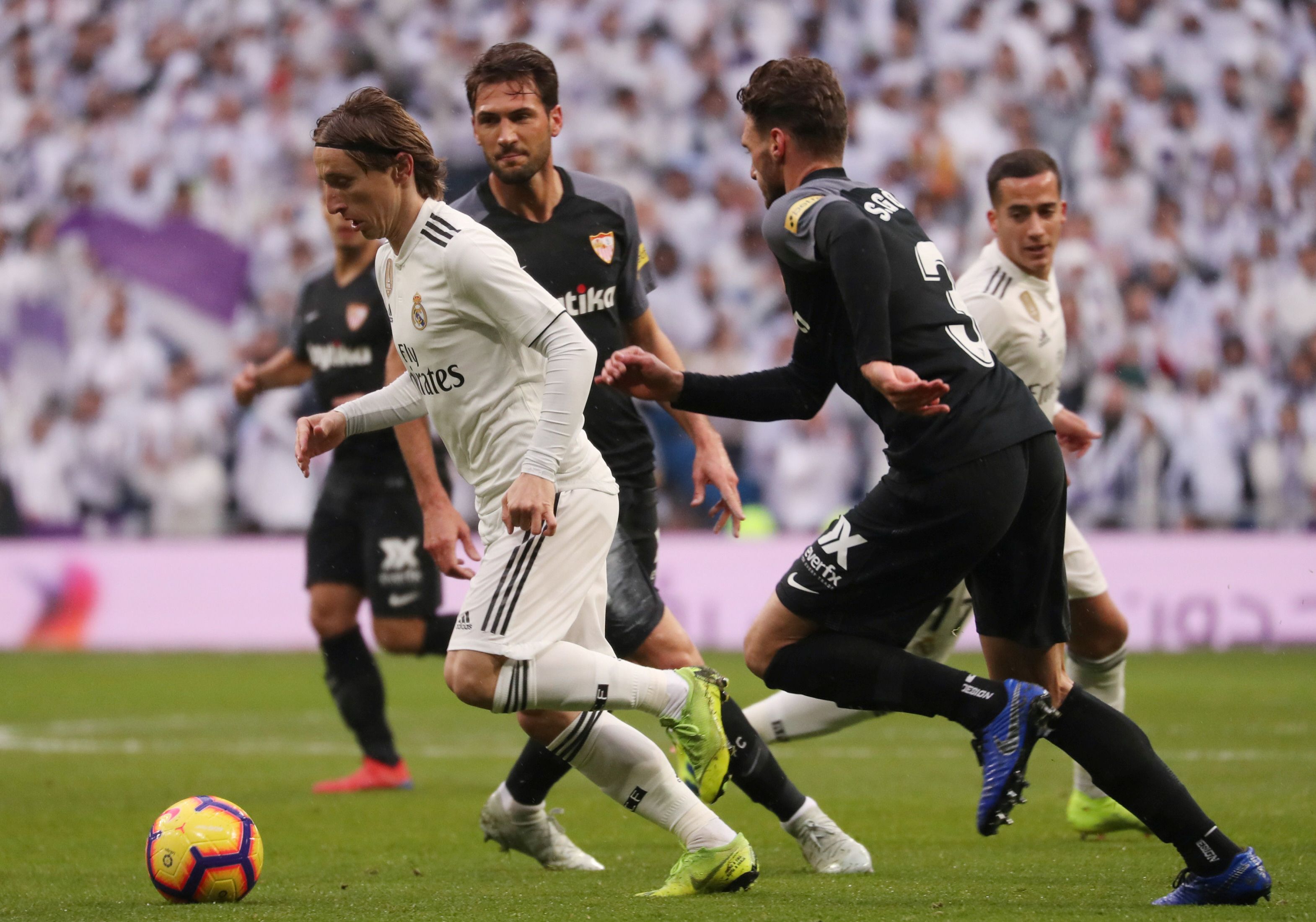Con goles del brasileño Casemiro y el croata Luka Modric, Real Madrid se impuso en el estadio Santiago Bernabéu y relegó a Sevilla (que hasta antes del partido compartía puesto con el campeón del Mundial de Clubes 2018) al cuarto lugar de la Liga.