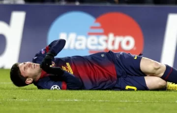 Messi se dobló la rodilla izquierda y quedó tendido en el suelo mostrando evidentes signos de dolor. La Pulga, que hasta el momento ostenta 84 tantos en el 2012, intentaba batir el récord de goles en un año conquistado por el alemán Gerd Müller, quien en 1970 anotó 85 tantos entre su club, Bayern Münich, y el seleccionado de su país.