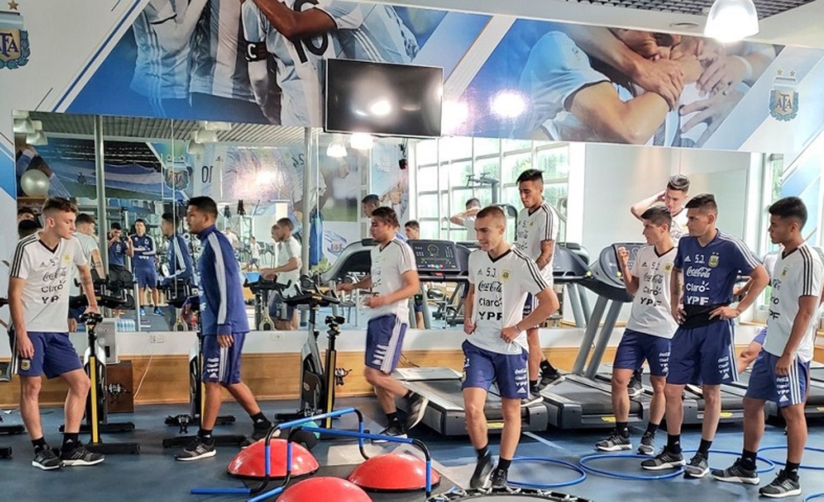 Primero, los 23 juveniles realizaron una entrada en calor utilizando bicicletas fijas y cintas, luego continuaron con un trabajo específico de fuerza y equilibrio, labores de reacción en grupos de a dos y al finalizar, tres pasadas en un circuito de siete estaciones. Tras esa esa práctica, volvieron a sus habitaciones y luego se prepararon para concurrir al almuerzo.