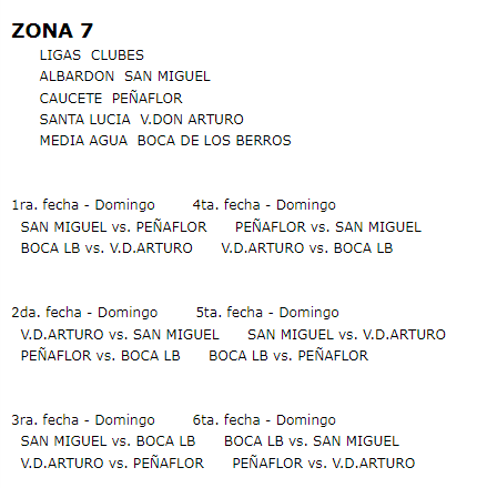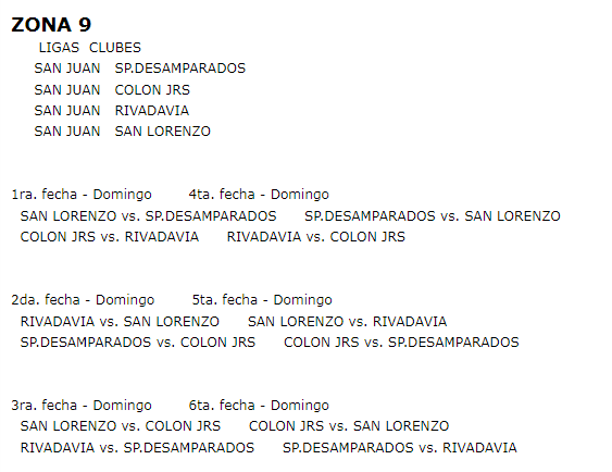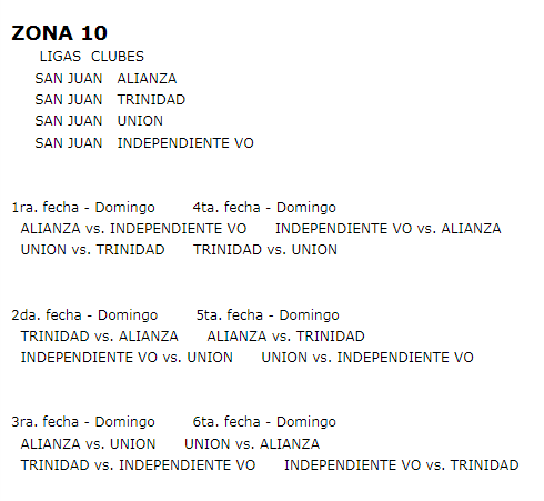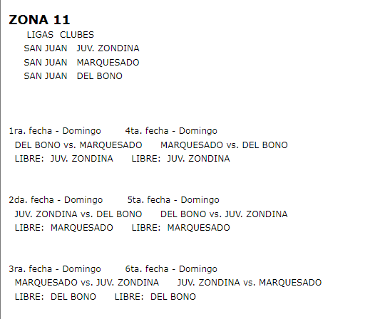 EL FIXTURE DE CADA ZONA