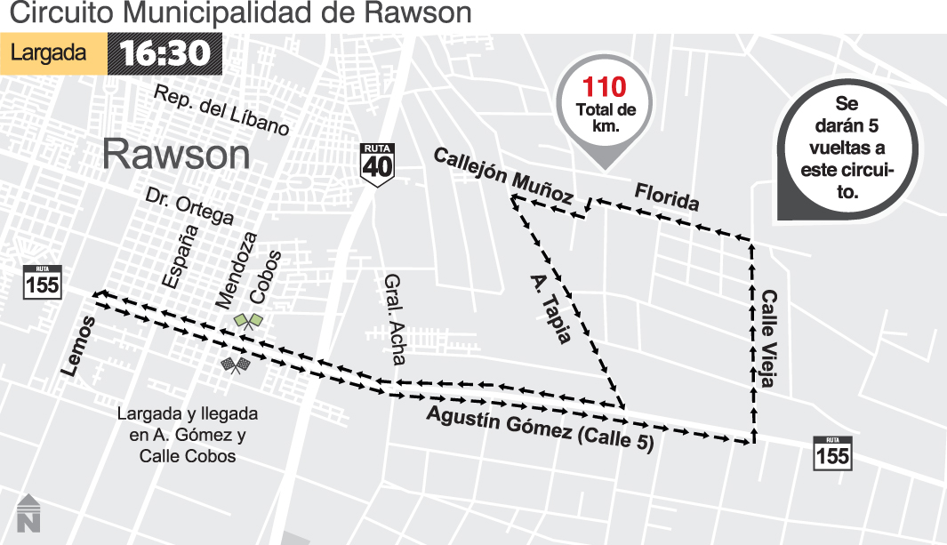 Se hará con el Circuito Municipalidad de Rawson, donde se espera que realicen los pedaleros cinco giros buscando al ganador. Como viene ocurriendo en la temporada doméstica, es muy probable que todo se defina en un embalaje masivo poniendo a cada equipo a su mejor sprinter.