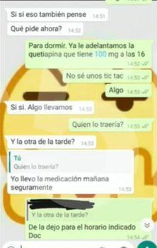 Después, según los chat, la enfermera Madrid le pregunta a la psiquiatra si puede comprar algo para el placebo y le informa que ya le adelantó la medicación para dormir.