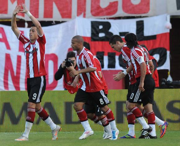El delantero Rogelio Funes Mori marcó el primero con un zurdazo a la carrera, desde afuera del área mayor, y el uruguayo Juan Manuel Díaz, de cabeza, el segundo, a los 4 y a los 23 minutos del período final.