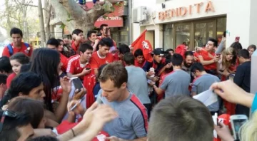 La espera de los fanáticos del Rojo no fue en vano y minutos después tuvieron su merecido premio, ya que Diego Rodríguez, Hernán Pellerano, Lucas Albertengo, Martín Benítez, Matías Pisano, Emiliano Papa y Jesús Méndez, entre otros, salieron firmar autógrafos y también a posar para las fotos.