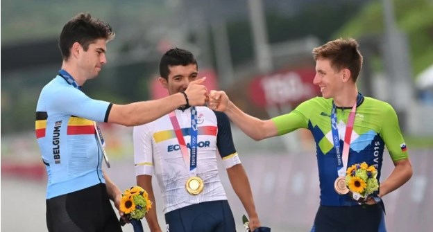 Carapaz, que iguala el oro que logró su compatriota Jefferson Pérez en los 50 kilómetros marcha de los Juegos de Atlanta 1996, entró solo en la meta tras escaparse del grupo de los favoritos a poco más de 20 kilómetros, aventajando en 1m07 al belga Wout van Aert y al ganador del Tour de Francia, el esloveno Tadej Pogacar, que completaron el podio tras un disputado sprint.