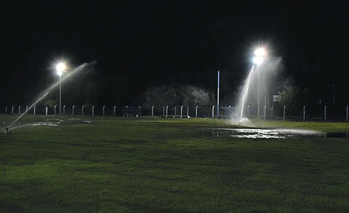 Siguen los trabajos en la refacción del Polideportivo Municipal "Viviana Chávez’, en pleno corazón de San Agustín. Luego del tratado de suelo que se realizó en la cancha de fútbol 11, ya se hicieron las primeras pruebas del riego por aspersión. Un paso adelante para el crecimiento que necesita el deporte vallisto, especialmente en infraestructura.
