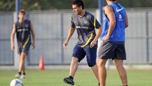 Rolando Schiavi y Darío Cvitanich hicieron trabajos diferenciados y trotaron en la cancha auxiliar junto con el kinesiólogo Leonardo Bechakian.