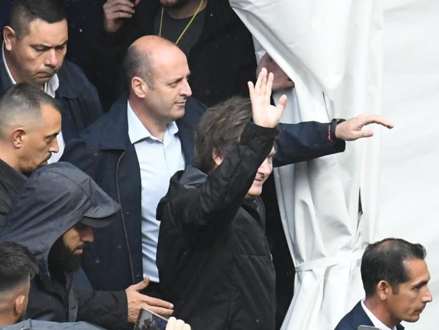 Silbidos. Recibió el presidente de la Nación, Javier Milei, quien apoyó a la fórmula opositora.