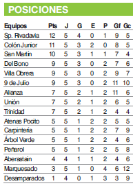 Con un gol de Ezequiel Tejada, Sportivo Rivadavia vivió un feliz domingo al vencer por 1-0 a Atlético Unión en Rawson, pasando a ser el líder solitario del Torneo de Verano de Primera División de la Liga Sanjuanina de Fútbol, aprovechando las caídas de Del Bono del sábado ante San Martín y de Villa Obrera frente a Sportivo Peñarol en este domingo. Así, los de La Bebida se acomodaron solitos en la cima de las posiciones, demostrando una gran segunda parte de la temporada y apuntando al protagonismo de fin de año. En otro de los partidos del domingo, en el Este, Sportivo 9 de Julio fue demoledor frente a Deportivo Carpintería para vencerlo por 3-1 y dejar a los celestes en una posición más que comprometida por el descenso. Mientras que el que hizo ruido fue Trinidad, que en La Rinconada de Pocito, venció como visitante a Atenas por 2-0 acomodándose en el lote de los que aspiran a entrar en semifinales.