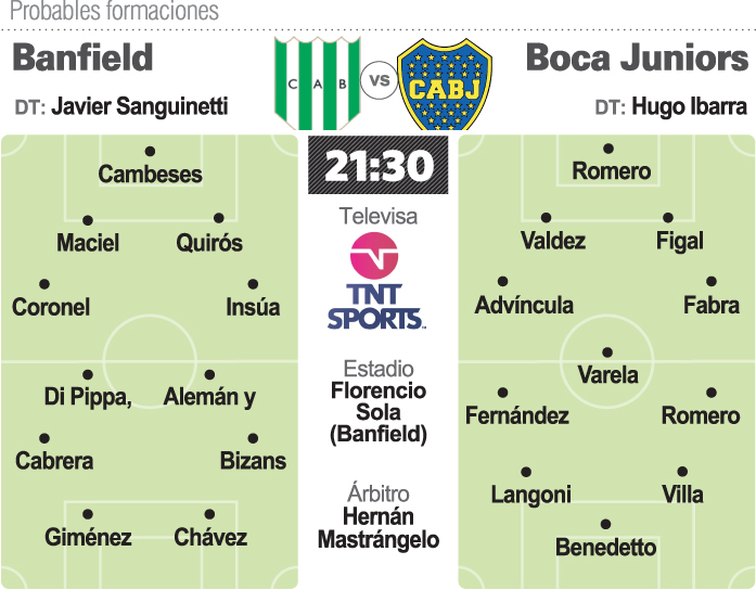 El encuentro se jugará este domingo a partir de las 21.30 en el estadio Florencio Sola, de Banfield. El técnico xeneize, Hugo Ibarra, apostará otra vez por el "tridente" ofensivo que componen Darío "Pipa" Benedetto, Luca Langoni, y el colombiano Sebastián Villa.
