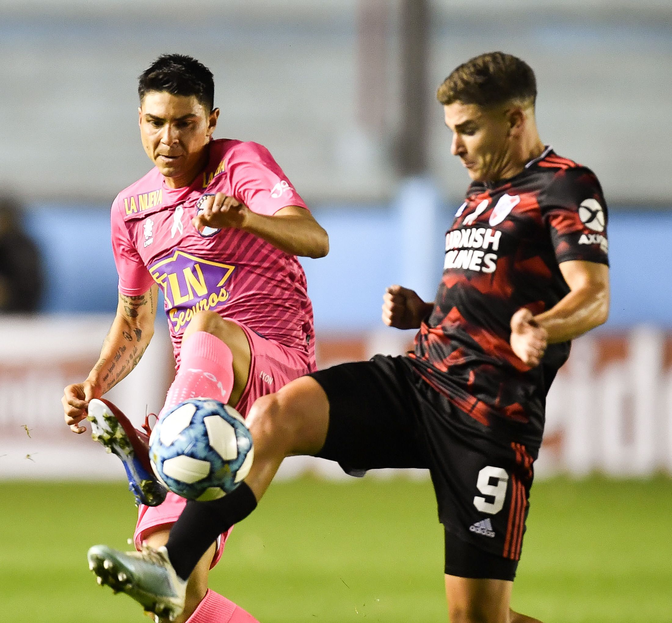 Arsenal no respetó nunca a River y lo obligó a jugar todo el partido en desventaja. Cada pelota se peleó con intensidad como esta entre Torrent y Álvarez y se compartieron aciertos y errores.