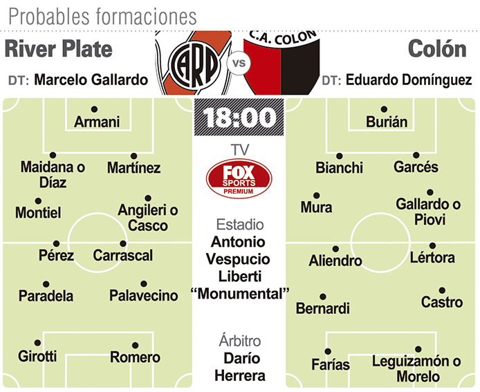 River Plate, enfocado en su participación en la Copa Libertadores y con un equipo integrado por algunos titulares y varios suplentes, será local hoy ante Colón de Santa Fe, reciente campeón de la Copa de Liga y con varios positivos en coronavirus en su plantel, en el inicio del torneo de la Liga Profesional de Fútbol. El partido se jugará este domingo en el estadio Monumental, en el barrio porteño de Núñez, a partir de las 18, televisado por Fox Sports y con el arbitraje del neuquino Darío Herrera.