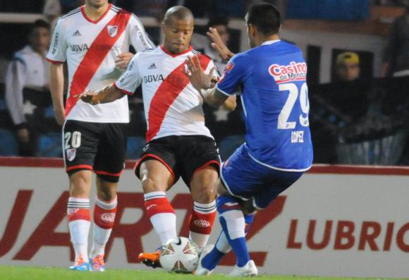 En el primer tiempo, River tuvo un gran dominio del balón y le llegó con mucho peligro al arco mendocino. La más clara la tuvo una de las figuras, Leonardo Pisculichi, cuando quedó solo ante el cuidapalos del Tomba, Sebastián Moyano, y la tiró demasiada cruzada. El propio exvolante de Argentinos tuvo otra opción neta y también Carlos Sánchez desaprovechó una oportunidad neta. En esa etapa, debió ser expulsado el delantero local, Rubén Ramírez, por un codazo a Ramiro Funes Mori, algo que ignoró el árbitro, Diego Ceballos.