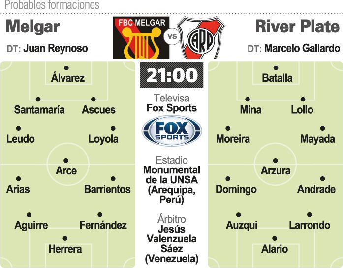 River jugará desde las 21 (televisará Fox Sports) en el estadio Monumental de la UNSA, con el arbitraje del venezolano Jesús Valenzuela Sáez.
