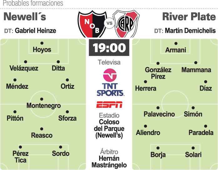 River Plate, que lidera la tabla de posiciones con una ventaja de cuatro puntos sobre San Lorenzo, arriesgará hoy la racha positiva que suma cuando visite a Newell"s con un equipo alternativo, en el estadio Coloso Bielsa, del Parque Independencia de Rosario, por la fecha 12 de la Liga Profesional.