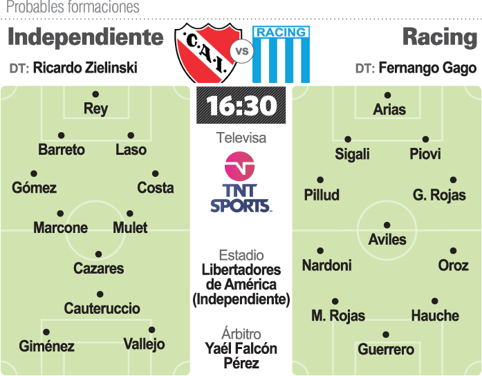 Independiente, convulsionado por sus problemas deportivos, institucionales y económicos, asumirá hoy con nuevo DT al clásico de Avellaneda ante Racing Club, que suma dos derrotas seguidas y dejó de ser un equipo confiable. El partido, que Independiente asumirá con Ricardo "Ruso" Zielinski como DT, se jugará a las 16.30 en el estadio Libertadores de América-Ricardo Bochini (ESPN y TNT Sports).