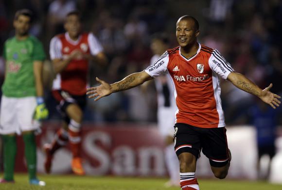 Pese a la alta temperatura (36 grados) imperante a la hora del partido, River no perdió su dinámica habitual durante el primer tiempo, en el que se mostró ligeramente superior a su rival dentro de un desarrollo bastante equilibrado. Inclusive los de Núñez merodearon el arco defendido por Rodrigo Muñóz con mayor asiduidad que Libertad. El final del primer tiempo tuvo un derechazo de 30 metros del volante local, Claudio Vargas, quien hizo estéril la estirada de Marcelo Barovero.