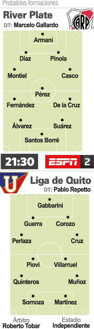 River recibirá hoy (21.30 por ESPN 2) a la Liga Deportiva Universitaria de Quito en busca de un triunfo que le asegure el primer puesto del Grupo D de la Copa Libertadores de América.