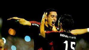 Ramiro Funes Mori, en su partido oficial número 100 con la camiseta de los Millonarios, y Juan Kaprof lograron ya en el primer tiempo los goles del conjunto de Núñez.