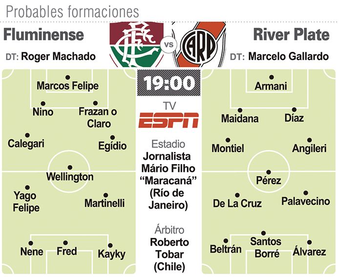 River Plate iniciará su camino hoy en la Copa Libertadores cuando visite a Fluminense en el estadio Maracaná de Río de Janeiro. El partido correspondiente al grupo D se jugará desde las 19, con el arbitraje del chileno Roberto Tobar y transmisión de ESPN. A tres meses de la eliminación ante Palmeiras en la semifinal de la edición 2020, el equipo de Marcelo Gallardo volverá a Brasil para buscar revancha e iniciar el camino hacia la conquista de la quinta Copa Libertadores.