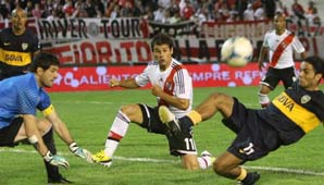 Boca empezó mejor en el primer tiempo, pero River lo emparejó y terminó esa mitad inicial mereciendo algo más. En el segundo tiempo, los millonarios salieron dispuestos a llevarse el partido. Faltaba puntería, hasta que, a los 24 minutos, Mora cabeceó un centro desde la izquierda de Vangioni, por ahora el único refuerzo del equipo de Ramón y quien cumplió una muy buena actuación. Luego, a ocho minutos del final, otra vez el uruguayo festejó.