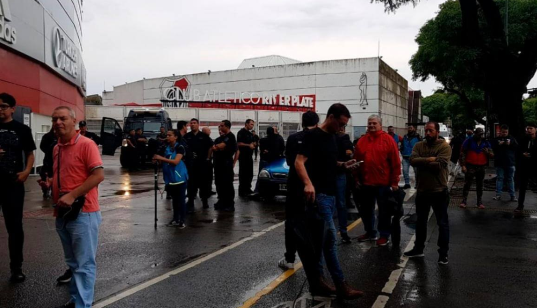 Pasadas las 15 de este sábado el juez llegó al estadio Monumental acompañado por el resto de la terna arbitral y fue informado por el gerente de infraestructura del estadio, Rodrigo Pecollo, sobre la disposición del club de no abrir sus puertas. Delfino, sin embargo, se bajó del vehículo en el que llegó hasta Núñez, se acercó hasta una de las puertas de ingreso y allí se labró un acta notarial junto a la escribana Marisa Galarza, quien constató la imposibilidad de ingresar al recinto.