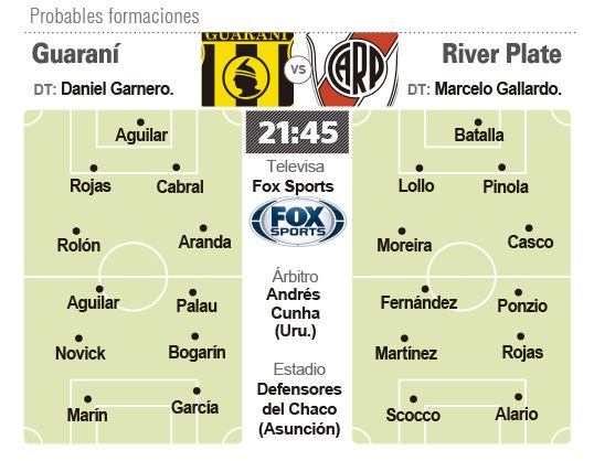 River, luego del escándalo por los doping positivos de Lucas Martínez Quarta y Camilo Mayada y con las presencias de los refuerzos Javier Pinola e Ignacio Scocco, visitará hoy a Guaraní de Paraguay (21.45 por Fox Sports), en el encuentro de ida de los octavos de final de la Copa Libertadores de América.