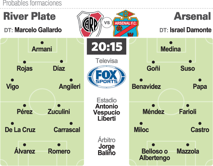 River suma seis fechas sin derrotas, con cuatro triunfos y dos empates. Arsenal asoma como un rival accesible para este River, sin Sergio Rondina como entrenador, reemplazado hace cinco fechas por Israel Damonte. Desde la llegada del nuevo DT, el equipo de Sarandí sufrió dos derrotas y tres empates y no logró marcar goles. Datos que dicen casi todo.