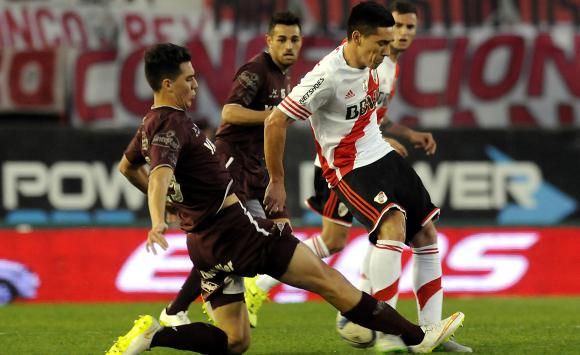 Con este resultado, el dueño de casa trepó a las 42 unidades, lejos de Boca Juniors que es líder con 55, aunque con un encuentro menos, mientras que los dirigidos por Guillermo Barros Schelotto acumulan 37. En el primer tiempo River intentó tener un poco más la pelota y generar algo de fútbol a través de los hombres de buen pie, aunque no generó nada de peligro sobre el arco de Fernando Monetti. La primera llegó a los 19 minutos, tras un pelotazo aislado desde campo propio, Almirón se fue directo al área, remató de derecha, pero Marcelo Barovero logró despejar hacia adelante. Aunque en el cierre de la etapa Aguirre tomó un tiro libre desde la derecha, a 30 metros del arco, y con un potente zurdazo envió la pelota al ángulo superior derecho del arco defendido por Barovero para el 1-0. Un minuto después Monetti salvó dos veces su valla, primero ante un remate del uruguayo Tabaré Viudez volando hacia su izquierda y luego tras un disparo de Pisculichi tapando hacia su derecha. En la segunda mitad, River salió decidido a buscar la igualdad, con otra actitud, ayudado por la pasividad de Lanús que casi no cruzó la mitad de cancha en toda la etapa. Más allá de eso, el dueño de casa no quedó muchas veces cara a cara con el arquero, pero, en el minuto 18, Pisculichi dispuso de un tiro libre desde la izquierda, que envió en forma de centro al área y encontró al ingresado Mora, quien en soledad sobre la línea del área menor conectó de derecha al gol, arrojándose hacia adelante. A partir de entonces River siguió buscando, y tuvo otra posibilidad a los 35 con un remate de Pisculichi de tiro libre.