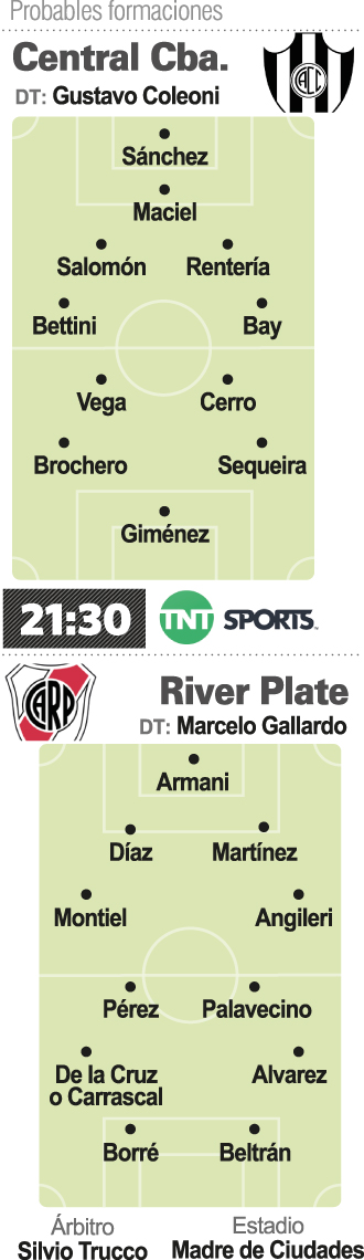River, segundo en la Zona A a cinco unidades del líder Colón, buscará consolidarse entre los equipos que clasificará a los cuartos de final cuando visite hoy a Central Córdoba de Santiago del Estero, que tiene a su DT Gustavo Coleoni y cuatro jugadores con coronavirus, en uno de los partidos que se jugarán por la fecha 10 de la Copa de la Liga Profesional (LPF).