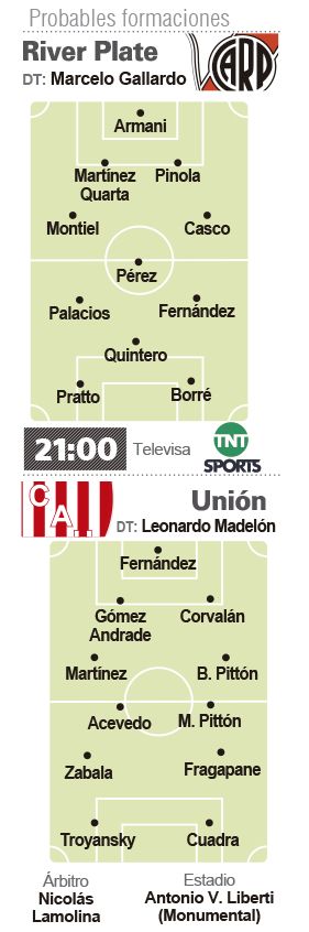 River, último campeón de la Copa Libertadores, irá hoy (21 horas por TNT Sports) por el primer triunfo oficial del año que le permita recuperar terreno en la Superliga cuando reciba a Unión de Santa Fe en el postergado de la fecha 12.