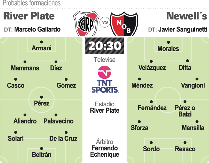 River Plate, estimulado por el triunfo de la semana pasada en Avellaneda sobre Independiente, recibirá hoy a Newell’s Old Boys con la misión de el apremio de conseguir una victoria para achicar la diferencia de 10 unidades que lo alejan del puntero Atlético Tucumán, en uno de los partidos por la 13ra. fecha de la Liga Profesional de Fútbol. Jugarán en el Monumental, desde las 20.30, con el arbitraje de Fernando Echenique y televisación de TNT Sports.