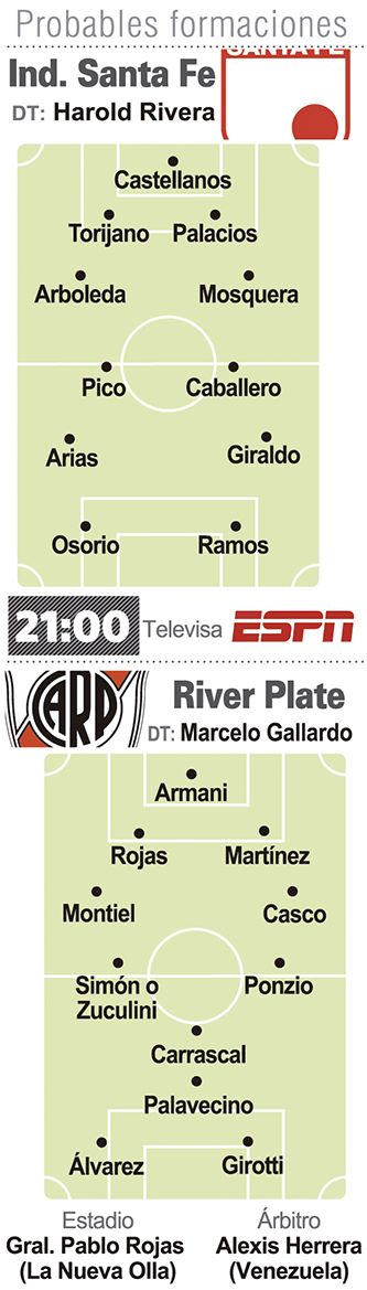 River, sin varios titulares, jugará hoy contra Independiente Santa Fe, en Paraguay (21 horas, por ESPN), después del cambio de sede por la tensión social que atraviesa Colombia en todo su territorio.