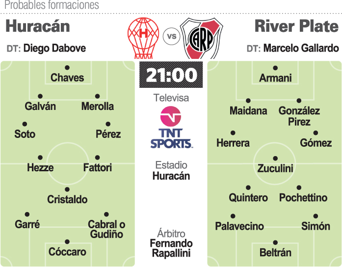 En busca de la necesaria reacción, River se presentará con una formación casi toda diferente a la que dispuso en el Amalfitani. Sólo se espera que repita al arquero Franco Armani, en una muestra clara que el "objetivo" central del Millonario no es el partido en Parque Patricios.
