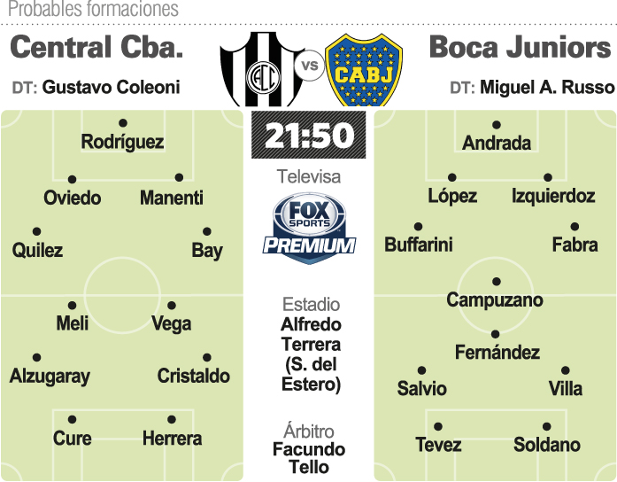 En principio, aun a falta de confirmación oficial del entrenador, el equipo de Boca, excepción hecha lo de Andrada, sería el mismo que viene de ganarle al "Decano" tucumano. Así, Carlos Tevez y Franco Soldano se perfilan para ser los componentes de la dupla ofensiva, relegando al cordobés Ramón Ábila al banco de los suplentes.
