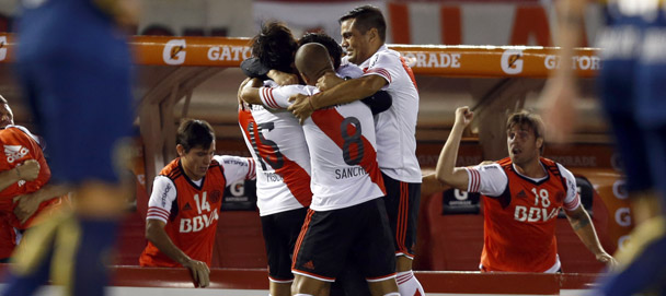 Leonardo Pisculichi, a los 16 minutos marcó el único gol del Superclásico, que apenas en el comienzo tuvo un pico emocional altísimo con el penal que sancionó Germán Delfino a los 18 segundos del comienzo en el estadio Monumental, pena que Marcelo Barovero le atajó a Emmanuel Gigliotti y marcó el rumbo del partido.