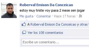"Estoy muy triste, voy pasa 2 mese sen jogar", expresó el brasileño en la red social luego del partido. De inmediato, sus seguidores comenzaron a brindarle fuerzas, apoyo y el deseo de que la recuperación sea pronta.