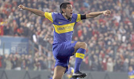 Boca Juniors, con una sólida actuación colectiva y un brillante Juan Román Riquelme, venció anoche a Unión Española de Chile por 3 a 2 y se clasificó para los cuartos de final de la Copa Libertadores de América.