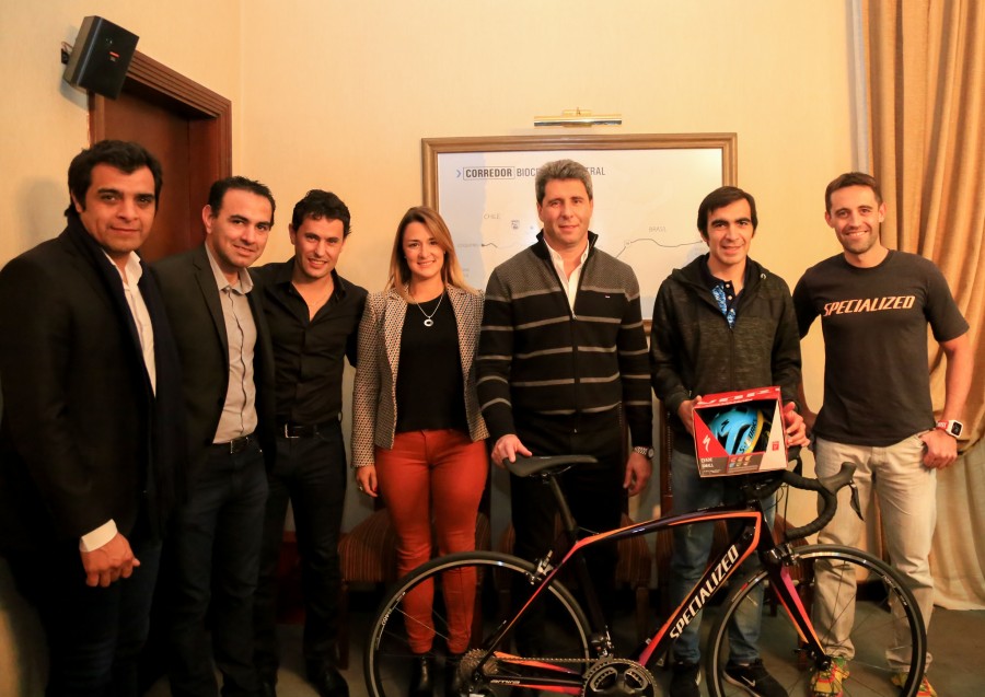 Esta martes en la tarde, el gobernador Sergio Uñac recibió al representante de la marca en la Argentina, Martín Magari, autoridades de la Secretaría de Deportes y a Rubén Ramos, flamante campeón argentino de ruta 2018 y subcampeón panamericano en la crono.